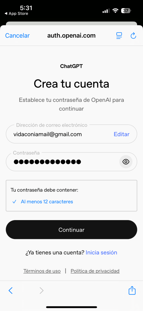 - Crea una contraseña segura (de al menos 12 caracteres).