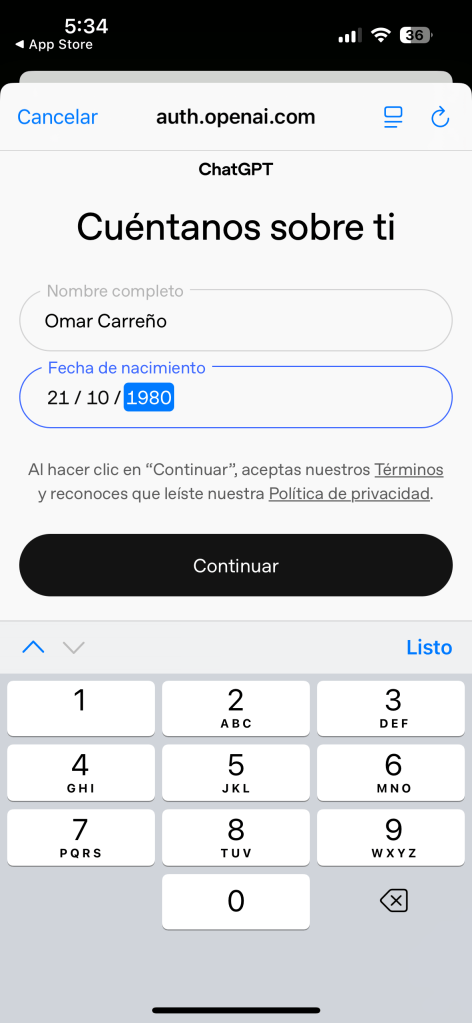 - Completa tu nombre y fecha de nacimiento.